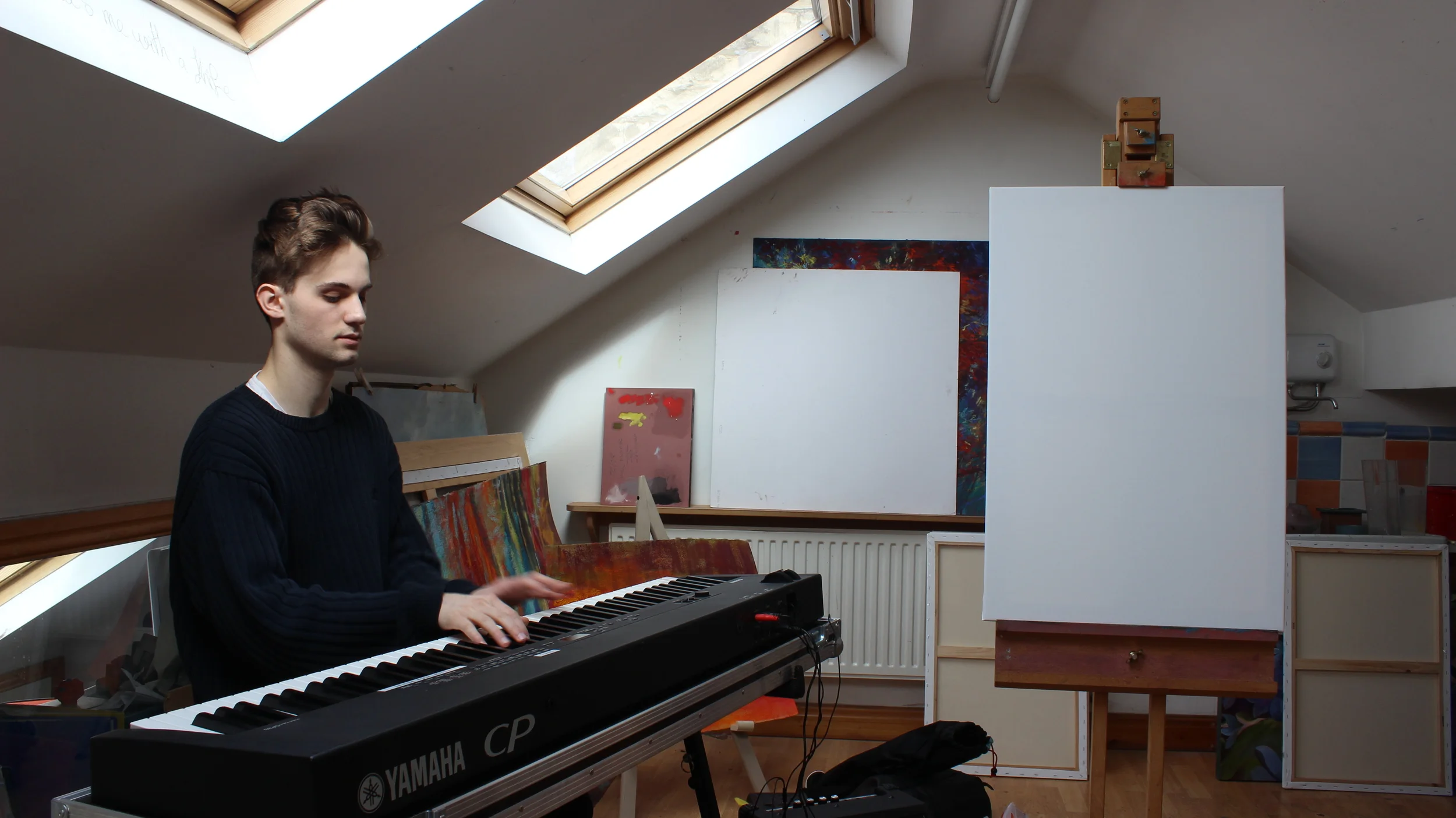 Arthur plays Debussy during a painting and music session with Steve at Nel Whatmore's home studio